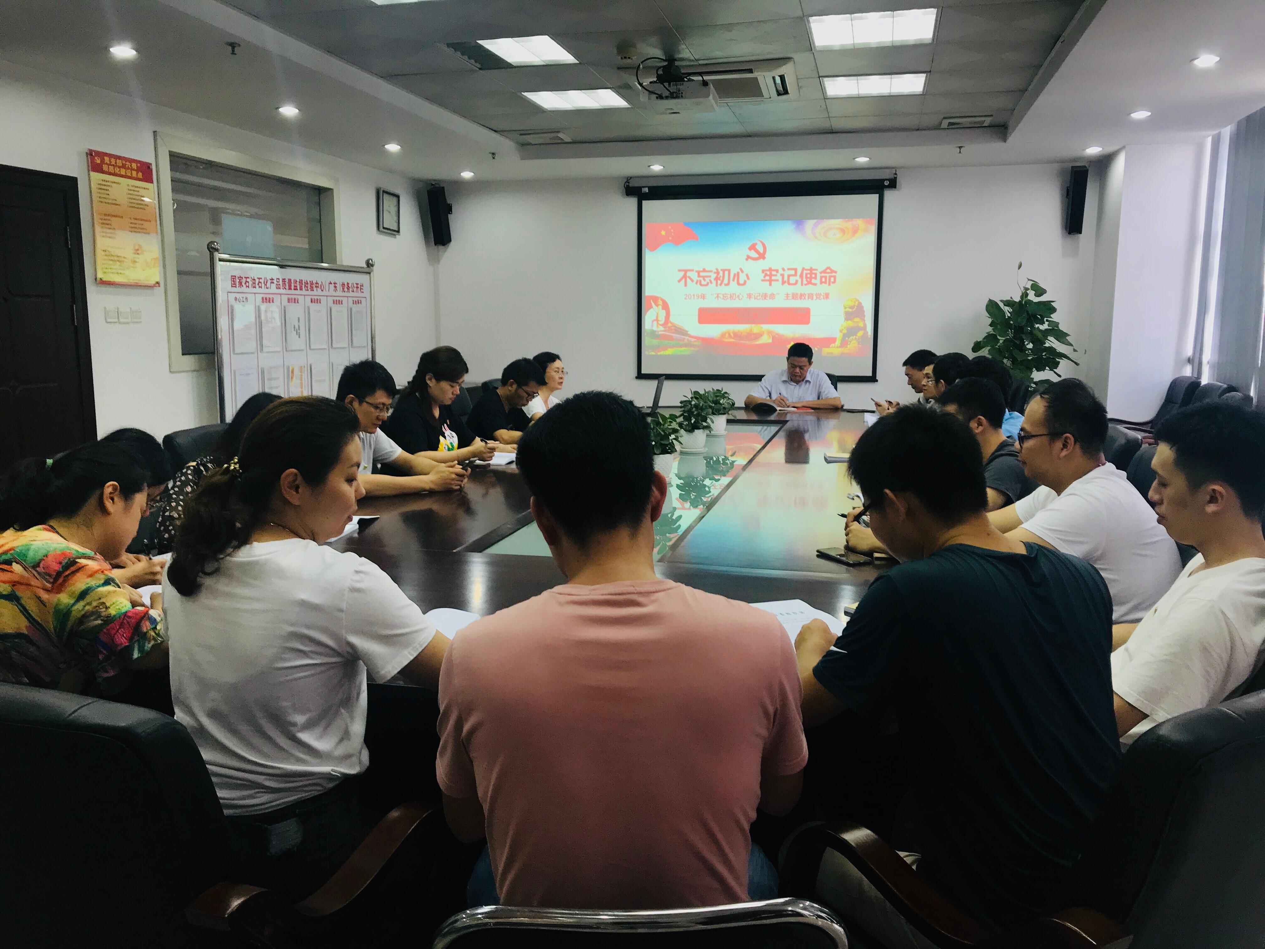 为认真贯彻中央、省委和市直工委关于开展“不忘初心、牢记使命”主题教育的文件精神,6月19日上午,国家石油石化产品质检中心(广东)党支部开展了“不忘初心,牢记使命”专题党课教育。党课由支部书记吕玉平同志主持,组织委员邱丽敏同志主讲,23名党员同志参加学习讨论。